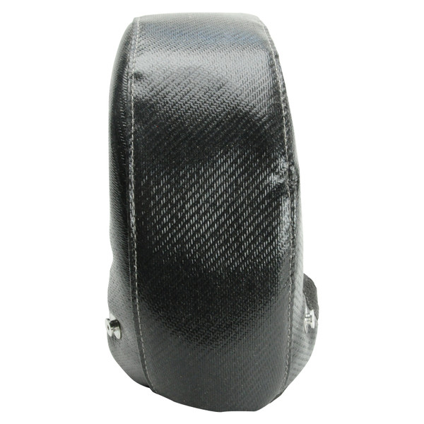 We raised the bar. The most technologically advanced turbo shield ever! We incorporated all our experience to build the absolute best turbo shield on the market. By developing advanced textiles and diving deep into what is needed to control turbo heat, we developed the GEN-3 Onyx Black Turbo Shield. A Silicone coated Onyx Black outer layer with multiple stainless steel and silica inner layers. Without a doubt the strongest, most heat resistant shield available. OUTER SHELL - Coated in silicone to insulate and hold up under extreme conditions. - Prevents fraying & encases seams to make them over 4 times stronger INSULATION LAYER - Thick layer of silica insulation keep heat in turbo shield and turbo housing. - Silica has a low thermal conductivity making one of the best insulators. INNER LAYER - Stainless steel, glass fiber & silicone adds to insulating and thermal properties. - Increases seam strength, durability and insulation value. INNER COVER - Stainless Steel fabric holds up against the highest temps. - Will not break down or become brittle with heat. Measuring your turbo size DEI Turbo shield sizes are based on two basic measurements. The first measurement is the circumference of the turbo not including the flange. The second measurement is the width of the turbo at it's widest point not including the flanges. After measuring, refer to the chart below to find the correct shield. Our T22 and T25/28 shields are designed for use on internally gated housings. They will have a cutout in the wastegate area to allow for a tight fitment. TURBO MEASUREMENTS CHART TURBO - CIRCUMFERENCE - WIDTH T22 - 15" - 2.25" T25/28 - 15" / 16" - 2.5" T3 - 15" / 16" - 2.5" T4 - 20" / 22" - 2.75" T6 - 26" - 3.75"