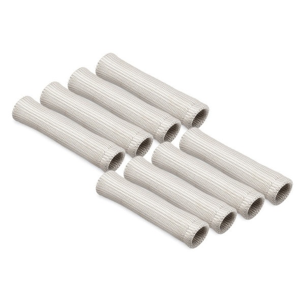 Protect-A-Boot Ringless Sleeves are superior protection for extreme angled plug wire boots that solve the problem of burning and cracking plug boots and wires from header and engine heat. DEI Protect-A-Boot Ringless Sleeves are uniquely designed to protect spark plug boots & wires against the harmful effects of direct and continuous heat - up to 1200°F. Continued exposure to extreme heat generated from the engine block, exhaust manifold and headers can cause burn through, hardening or cracking of the spark plug wires and boots. Like the original Protect-A-Boots product, the ringless sleeves offer the same heat protection and double wall construction for added strength and durability, yet are designed to provide a universal fit for extreme angled, oversized, or rigid boots like ceramic ignition wire ends. The 1.25 in. I.D. at both ends and pliable construction allow the sleeves to fit multiple angled spark plug boots. Otherwise the material is the same as DEI's popular Protect-A-Boots that are made from a tightly woven high temperature resistant glass fiber material. Universal - fits multiple angled spark plug boots 1.25 in. I.D. x 6 in. length Withstands up to 1200°F of direct heat Glass fiber double-wall construction