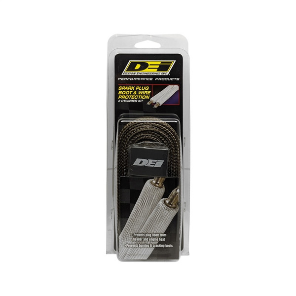 Titanium(TM) Protect-A-Sleeve solves the problem of burning, cracking plug wires, lines & hoses from engine & exhaust heat. DEI's Titanium Protect-A-Sleeve with LR Technology(TM) offers the best possible line sleeve protection on the market. Developed specifically for any application where extreme high heat is present, these Titanium sleeves will protect wires, lines and cables when exposed up to 1800°F direct heat/2500°F radiant. Developed with DEI's proprietary LR Technology, these high temperature rated sleeves provide superior thermal protection for street vehicles or race engines, protecting fuel, oil lines, spark plug and electrical wires from direct or under hood radiant heat. Water and heat resistant, they are also ideal for Powersports ATV/UTV, motorcycle, personal watercraft, snowmobiles, and marine use. The 1/2 in. ID sleeves will fit many of today's larger diameter spark plug wires for protection against hot exhaust manifolds and headers. Titanium Protect-A-Sleeve is also offered in 1 in. and 2 in. diameters. Constructed from high temperature resistant basalt fiber material Protects electrical wiring, speedometer cable, hoses & more 1/2 in. I.D. 4 Cylinder Kit Contains: 13 feet of sleeving & 12 Hi-Temp Boot Shrink Tubes
