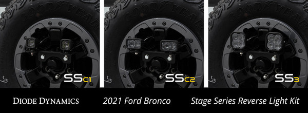 FeaturesDirect fitment compatible with Ford Bronco 2021-2023.Allows you to mount SSC1 SSC2 or SS3 LED pods to the spare tire.Custom-designed harness for simple wiring with OEM connectors and aux switch override.Provides high-power reverse light and red accent light.Bolts on to spare tire carrier using included 60mm or 90mm extension lugs.Designed and assembled in USA. Overview. There's plenty of ways to add light behind your vehicle but the new Stage Series Reverse Light Kit stands out with innovations in both function and ease of use. This kit includes an integrated red running light and plug-and-play wiring harness for trouble-free installation! Thanks to Stage Series TIR optic technology this kit provides a huge amount of extra reverse light. The included switch allows you to toggle it on any time or activate automatically with your reverse lights for a truly integrated solution.Plug and Play. Thanks to custom-molded OEM connectors this kit is completely plug-and-play. The included adapter harness plugs right into your factory tail lights for easy installation and operation. No cutting drilling or additional wiring needed! The kit operates as an additional red accent light with your tail lights and then automatically switches to a high-power backup light when your vehicle is in reverse. The included toggle switch allows you to override the vehicle signals and turn on the main beam anytime.Backlight Functionality. The Stage Series LED pods included with this kit feature a distinctive backlight in a vibrant red color which functions as an additional accent light while driving! The backlight fully illuminates the TIR optic providing a more unique and modern look than the small indicator LEDs found in other products.