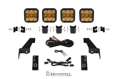FeaturesBolt-on fitment compatible with Jeep JL Wrangler 2018-2021Ultra-high intensity with custom-engineered TIR opticsSelectable backlight color with eight color optionsTorture-tested heavy-duty constructionControl through factory aux switch bank using the included harnessAssembled in USAOverviewPerfect Fitment. The Grille CrossLink Lightbar Kit compatible with Jeep JL Wrangler 2018-2021 from Diode Dynamics allows you to mount four linked SS5 LED pods on the factory grille. These application-specific brackets were CAD-designed to bolt into place using factory mounting points on the bumper.Designed for Performance. Featuring the highest output intensity of any 5-inch LED pod on the market these lamps have been designed for maximum functionality with patented technology and custom-engineered TIR optics all in a durable package.Selectable Backlight. The Stage Series 5inch LED Pods included in the White kit feature a selectable backlight with eight different color options perfect for an extra accent. Selecting your backlight color is easy - simply alternate the power on and off. There's no complicated programming with a controller! The SS5's backlight fully illuminates the TIR optic providing unique accent lighting that you won't find on other LED pods. NOTE: The Yellow kit is only available with an Amber backlight color.CrossLink. Our patent-pending CrossLink technology allows you to link up to eight SS5 pods together to create your own lightbar. The single-piece CNC aluminum link provides extreme rigidity but is fully adjustable for both straight and curved configurations.NOTE: The existing mounting points must be drilled out larger in order to secure the bracket.