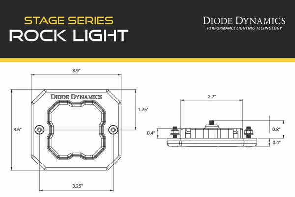 Rock Light Flush Mount Adapter KitAllows for flush installation on bumpers and truck bedsCompatible with Stage Series Rock LightsConstructed of black powdercoated aluminumIncludes flush mount bezel flush frame gasket and mounting hardware OverviewFlush Mount. This flush mount kit allows you to mount your Stage Series Rock Light flush in your bumper truck bed or anywhere else you can think of.Experience. After over a decade in business Diode Dynamics is the most trusted name in automotive LED lighting. Unlike every other LED distributor we manufacture and engineer products ourselves in the United States for high quality and fast time-to-market of the newest and brightest LED technologies. We pride ourselves in offering only quality LED products that will exceed your expectations. Please contact us if you'd like to discuss your lighting project!