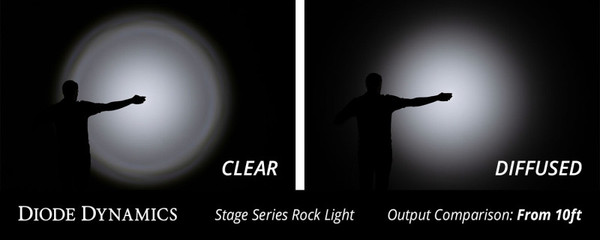 FeaturesReplacement lens for Stage Series Rock LightThick automotive-grade polycarbonateOptical features engineered to spread lightAllows for quick color swapAvailable in Clear Red Amber Blue and GreenOverview. This lens is a direct replacement for the original main lens in your Stage Series LED Rock Lights. It can be used to change both the color and output pattern with a quick swap! Each lens is made of a thick automotive-grade polycarbonate designed to take a beating on the trail.Optically Engineered. Most rock lights are built without optics in mind. They use a simple clear cover to protect from the elements. In true Diode Dynamics style we(TM) ve incorporated optical features to get the best performance possible. Four individual optics are molded into the outer lens which provides excellent spread and even consistent coverage from each light.Colors. Stage Series LED Rock Light lenses are available in clear and diffused options producing a white amber red green or blue color. You can change the color of your single-color rock lights by swapping out the lens.Easy Swap. Changing the outer lens on your Stage Series LED Rock Light takes just a few seconds! Simply snap it off using a small screwdriver and snap your new lens in its place. Take care not to touch the inner optical surface of your new lens during the swap or wear a pair of gloves to keep things clean and you are ready to shine in your new color!