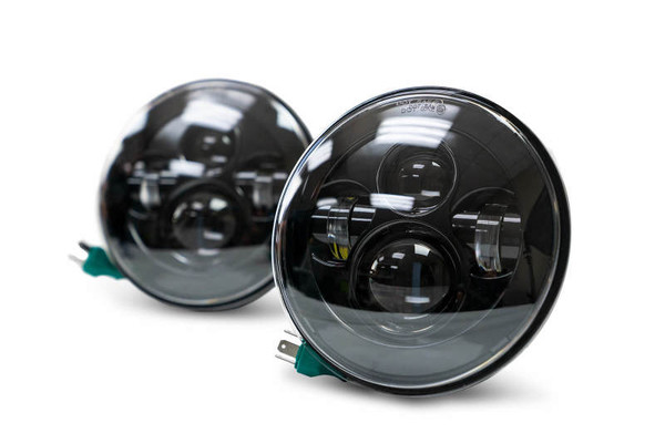 DV8 LED projector headlights are a huge upgrade from stock JK headlights in both brightness and style. They use advanced optical technology to make the most of the LED lights that are housed within them. This projector sends a bright and useful pattern toward the front of the Jeep allowing you to see almost twice the distance of a stock headlight. Many also prefer the white light that these headlights give off rather than the amber color from standard headlights. The lights come with a full harness to allow for simple and easy installation. LED Projector Headlights without Halo. Sold as a Set. Fits 2007-2018 Jeep Wrangler.