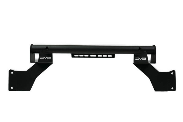 This crossbar was designed to provide your Bronco additional mounting options for rear facing LED lights and speaker cans, or a speaker bar. The bar measures 29-inches in total length, and is 2-inches in diameter. There is a 10-inch slotted flat mount in the middle of the bar. 4 holes, 2 towards each end, allow you to run wiring hidden inside the bar. It is finished in a Micro-Texture Black Powder Coat, which blends well with the OEM trim. There are several possible configurations you can run. Two speaker cans with roll bar clamps can be installed, with up to a 6-inch light bar or two 3-inch pod lights on the flat mount. You can run a 20-inch light bar across the length of the bottom if utilizing the back rail mounts on the bar. Alternatively, a speaker bar up to 28-inches wide with roll bar clamps can be mounted across the bottom of the bar.