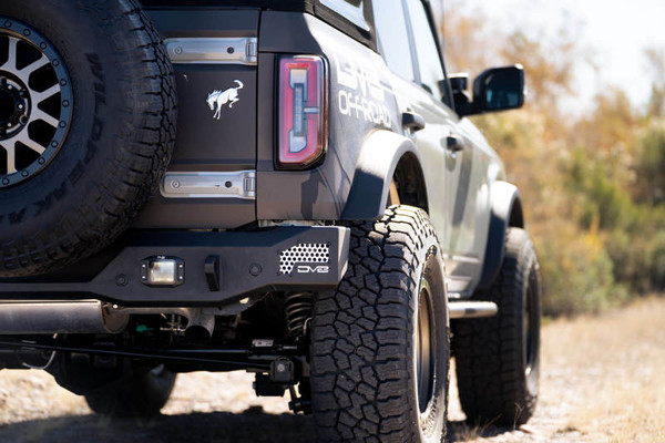 The Bronco MTO Series Rear Bumper is compatible with all Bronco trim levels. We've placed the license plate mount at the side of the bumper, in order to accommodate up to 37-inch wheels and to ensure the tail gate swings open freely. Included with the new license plate bracket are license plate lights. Two 3-inch flush mount pod lights can be mounted towards either side of the bumper. There are 2 clevis mounts that take 3/4-inch D-ring shackles that provide recovery options. The MTO Series bumper includes sensor holes to retain full functionality of the factory backup sensors.