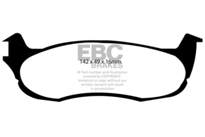 If you simply need a quality OEM replacement pad, look no further than Ultimax. Made in the UK Bristol EBC Brakes manufacturing plant Ultimax is a beautifully engineered brake compound that lasts well, produces minimal dust and is the perfect choice for the urban or daily driver. Why spend more if all you need is a quality replacement pad.The Ultimax pad does include a small percentage of steel fibre to achieve its price point, far less content than our competition where steel fibre content can attain 50 volume and this optimum fibre blend is what makes Ultimax both popular and unique amongst brake blends .Once bedded in Ultimax will inspire confidence in any car light truck or SUV no matter how you drive.Its universal heat range abilities and low rotor wear are additional benefits of the Ultimax pad range which is the EBC worldwide number one selling brake with numbers of sets sold running into tens of millions over the recent years. Unlike many of our performance grades Ultimax has remain unchanged as a pad compound for ten years now, a true testament to its success and customer acceptance. Why change a winning formula.Black coded in the EBC range EBC Ultimax is a fully ECE R 90 approved brake pad range and at its lower price point, less than HALF the price of original parts yet TOTALLY EQUIVALENT by nature of its R 90 brake safety approval, Ultimax offers great value for money and first class driving safety.When replacing brakes of any kind please remember how important brake safety is to your own well being and either have a professional mechanic install your new brakes or if you are a qualified mechanic use the EBC installation DVD as a guide in support of your vehicle owner's manual. These installation guide DVD tasters can be viewed here and the full DVD purchased from online vendors.