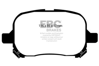 If you simply need a quality OEM replacement pad, look no further than Ultimax. Made in the UK Bristol EBC Brakes manufacturing plant Ultimax is a beautifully engineered brake compound that lasts well, produces minimal dust and is the perfect choice for the urban or daily driver. Why spend more if all you need is a quality replacement pad.The Ultimax pad does include a small percentage of steel fibre to achieve its price point, far less content than our competition where steel fibre content can attain 50 volume and this optimum fibre blend is what makes Ultimax both popular and unique amongst brake blends .Once bedded in Ultimax will inspire confidence in any car light truck or SUV no matter how you drive.Its universal heat range abilities and low rotor wear are additional benefits of the Ultimax pad range which is the EBC worldwide number one selling brake with numbers of sets sold running into tens of millions over the recent years. Unlike many of our performance grades Ultimax has remain unchanged as a pad compound for ten years now, a true testament to its success and customer acceptance. Why change a winning formula.Black coded in the EBC range EBC Ultimax is a fully ECE R 90 approved brake pad range and at its lower price point, less than HALF the price of original parts yet TOTALLY EQUIVALENT by nature of its R 90 brake safety approval, Ultimax offers great value for money and first class driving safety.When replacing brakes of any kind please remember how important brake safety is to your own well being and either have a professional mechanic install your new brakes or if you are a qualified mechanic use the EBC installation DVD as a guide in support of your vehicle owner's manual. These installation guide DVD tasters can be viewed here and the full DVD purchased from online vendors.