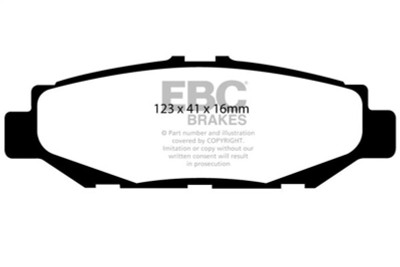 Designed for premium street driving offering better brake effect up to 600-degrees C (1100-degrees F). EBC Greenstuff has a high initial brake effect and gives drivers confidence from first application of the brake pedal. There is no such thing as a NO DUST pad. The very nature of how a brake works requires that some dust be generated to avoid rotor vibration (shimmying). The EBC pad creates less dust and dust is more easily washed off than most. All pads create more dust as they are bedding in especially if rotors are worn. Nominal friction coefficient 0.55. For heavier faster cars and vehicles above 200bhp we strongly recommend Redstuff which DOES offer much less dust.