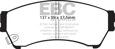 If you simply need a quality OEM replacement pad, look no further than Ultimax. Made in the UK Bristol EBC Brakes manufacturing plant Ultimax is a beautifully engineered brake compound that lasts well, produces minimal dust and is the perfect choice for the urban or daily driver. Why spend more if all you need is a quality replacement pad.The Ultimax pad does include a small percentage of steel fibre to achieve its price point, far less content than our competition where steel fibre content can attain 50 volume and this optimum fibre blend is what makes Ultimax both popular and unique amongst brake blends .Once bedded in Ultimax will inspire confidence in any car light truck or SUV no matter how you drive.Its universal heat range abilities and low rotor wear are additional benefits of the Ultimax pad range which is the EBC worldwide number one selling brake with numbers of sets sold running into tens of millions over the recent years. Unlike many of our performance grades Ultimax has remain unchanged as a pad compound for ten years now, a true testament to its success and customer acceptance. Why change a winning formula.Black coded in the EBC range EBC Ultimax is a fully ECE R 90 approved brake pad range and at its lower price point, less than HALF the price of original parts yet TOTALLY EQUIVALENT by nature of its R 90 brake safety approval, Ultimax offers great value for money and first class driving safety.When replacing brakes of any kind please remember how important brake safety is to your own well being and either have a professional mechanic install your new brakes or if you are a qualified mechanic use the EBC installation DVD as a guide in support of your vehicle owner's manual. These installation guide DVD tasters can be viewed here and the full DVD purchased from online vendors.