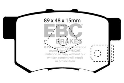 EBC Yellowstuff is an aramid fibre based brake compound with high brake effect form cold and is possibly one of the first ever compounds that can be used for STREET AND TRACK DRIVING. These pads do not require warm up but do get even stronger under the heat of hard driving. These are not a low dust pad and if your desire is for a low dust premium street use pad, you should consider EBC Redstuff.When considering full race use, Yellowstuff has been a strong favourite, having been used for two years in the Swedish Camaro Cup and at numerous other race events where a stock caliper system is fitted.It is also the choice of 90-percent of the Mazda MX5 Miata competitors in the UK race series and has an unblemished record as rotor friendly track pad for vehicles up to 2000 lbs weight or 200 BHP.In the USA the SCCA and NASA drivershave been testing Yellowstuff with feedback and good reports POURING in from a 543 test driver major market proving event with these groups. Read that figure again 543 test drivers.There is no guesswork here.