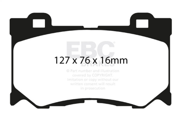 Designed for premium street driving offering better brake effect up to 600-degrees C (1100-degrees F). EBC Greenstuff has a high initial brake effect and gives drivers confidence from first application of the brake pedal. There is no such thing as a NO DUST pad. The very nature of how a brake works requires that some dust be generated to avoid rotor vibration (shimmying). The EBC pad creates less dust and dust is more easily washed off than most. All pads create more dust as they are bedding in especially if rotors are worn. Nominal friction coefficient 0.55. For heavier faster cars and vehicles above 200bhp we strongly recommend Redstuff which DOES offer much less dust.