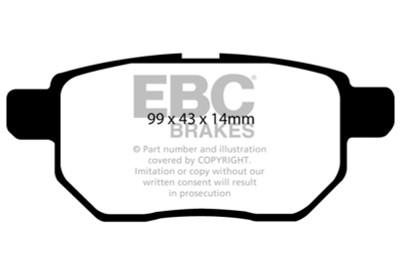 EBC Yellowstuff is an aramid fibre based brake compound with high brake effect form cold and is possibly one of the first ever compounds that can be used for STREET AND TRACK DRIVING. These pads do not require warm up but do get even stronger under the heat of hard driving. These are not a low dust pad and if your desire is for a low dust premium street use pad, you should consider EBC Redstuff.When considering full race use, Yellowstuff has been a strong favourite, having been used for two years in the Swedish Camaro Cup and at numerous other race events where a stock caliper system is fitted.It is also the choice of 90-percent of the Mazda MX5 Miata competitors in the UK race series and has an unblemished record as rotor friendly track pad for vehicles up to 2000 lbs weight or 200 BHP.In the USA the SCCA and NASA drivershave been testing Yellowstuff with feedback and good reports POURING in from a 543 test driver major market proving event with these groups. Read that figure again 543 test drivers.There is no guesswork here.