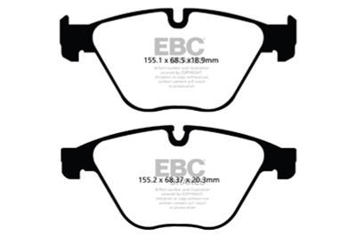 Designed for premium street driving offering better brake effect up to 600-degrees C (1100-degrees F). EBC Greenstuff has a high initial brake effect and gives drivers confidence from first application of the brake pedal. There is no such thing as a NO DUST pad. The very nature of how a brake works requires that some dust be generated to avoid rotor vibration (shimmying). The EBC pad creates less dust and dust is more easily washed off than most. All pads create more dust as they are bedding in especially if rotors are worn. Nominal friction coefficient 0.55. For heavier faster cars and vehicles above 200bhp we strongly recommend Redstuff which DOES offer much less dust.