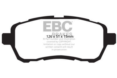 Designed for premium street driving offering better brake effect up to 600-degrees C (1100-degrees F). EBC Greenstuff has a high initial brake effect and gives drivers confidence from first application of the brake pedal. There is no such thing as a NO DUST pad. The very nature of how a brake works requires that some dust be generated to avoid rotor vibration (shimmying). The EBC pad creates less dust and dust is more easily washed off than most. All pads create more dust as they are bedding in especially if rotors are worn. Nominal friction coefficient 0.55. For heavier faster cars and vehicles above 200bhp we strongly recommend Redstuff which DOES offer much less dust.