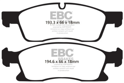 The UK EFI Bristol factory of EBC Brakes has used new ECO friendly technology to develop a brake pad that has unusually high friction levels yet still has good manners for street use with brake effect being strong from cold when the brake is first applied. The race pedigree of the material used also guarantees effective stopping up to temperatures exceeding 1400 F well above the maximum experienced in heavy braking, towing or downhill descents. Winter testing in Ohio on a fleet five popular light trucks showed us the proof on cold braking in the worst wet and cold conditions where many performance brakes would not even start to show good brake effect. So these are pads that have an extremely wide range of usability. The new carbon granule based Extra Duty material is also rotor friendly, minimal in dust and noiseless and each set is supplied with revolutionary NUCAP piston insert shims, another first from EBC