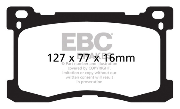 There are TWO reasons our customers love Redstuff, First because they are the lowest dust pad we have encountered by reducing dust by 60-90-percent. Plus the minimal dust you see is very easily removed with a simple sponge wash as it contains no steel fibre particles as in ALL OTHER pads. Second they brake like an alligator right from cold (as good as Original pads or better) and just get better as they heat up.This material is a Synthetic Fiber based brake compound enhanced with ceramic particles. If you have previously tried EBC redstuff (pre-ceramic compound) this material is light years ahead. It lasts longer; it brakes better and is quieter. Being a hard wearing pad, bed-in times can be as long as 1000 miles and drivers must be patient until the pad takes up the shape of their disc (brake rotor). This is a truly impressive fast road pad for repeated heavy braking.It emits far less dust than semi-metallic pads and has been proven to stop a passenger car/sedan/sport compact/hot hatch 13 metres quicker than OEM pads from 100mph/160kph. Features EBC Brake-In surface coating which conditions rotor surface and accelerates pad bed-in. Nominal friction coefficient 0.5 with approx. 50-percent dust reduction.Most EBC Red Ceramic pads are approved to ECE R90 brake safety regulation.