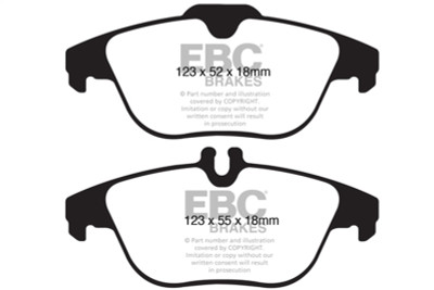 Designed for premium street driving offering better brake effect up to 600-degrees C (1100-degrees F). EBC Greenstuff has a high initial brake effect and gives drivers confidence from first application of the brake pedal. There is no such thing as a NO DUST pad. The very nature of how a brake works requires that some dust be generated to avoid rotor vibration (shimmying). The EBC pad creates less dust and dust is more easily washed off than most. All pads create more dust as they are bedding in especially if rotors are worn. Nominal friction coefficient 0.55. For heavier faster cars and vehicles above 200bhp we strongly recommend Redstuff which DOES offer much less dust.