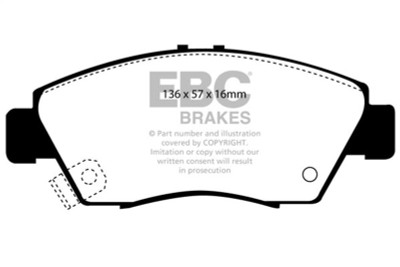 Designed for premium street driving offering better brake effect up to 600-degrees C (1100-degrees F). EBC Greenstuff has a high initial brake effect and gives drivers confidence from first application of the brake pedal. There is no such thing as a NO DUST pad. The very nature of how a brake works requires that some dust be generated to avoid rotor vibration (shimmying). The EBC pad creates less dust and dust is more easily washed off than most. All pads create more dust as they are bedding in especially if rotors are worn. Nominal friction coefficient 0.55. For heavier faster cars and vehicles above 200bhp we strongly recommend Redstuff which DOES offer much less dust.