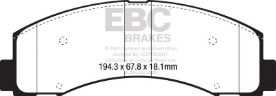If you simply need a quality OEM replacement pad, look no further than Ultimax. Made in the UK Bristol EBC Brakes manufacturing plant Ultimax is a beautifully engineered brake compound that lasts well, produces minimal dust and is the perfect choice for the urban or daily driver. Why spend more if all you need is a quality replacement pad.The Ultimax pad does include a small percentage of steel fibre to achieve its price point, far less content than our competition where steel fibre content can attain 50 volume and this optimum fibre blend is what makes Ultimax both popular and unique amongst brake blends .Once bedded in Ultimax will inspire confidence in any car light truck or SUV no matter how you drive.Its universal heat range abilities and low rotor wear are additional benefits of the Ultimax pad range which is the EBC worldwide number one selling brake with numbers of sets sold running into tens of millions over the recent years. Unlike many of our performance grades Ultimax has remain unchanged as a pad compound for ten years now, a true testament to its success and customer acceptance. Why change a winning formula.Black coded in the EBC range EBC Ultimax is a fully ECE R 90 approved brake pad range and at its lower price point, less than HALF the price of original parts yet TOTALLY EQUIVALENT by nature of its R 90 brake safety approval, Ultimax offers great value for money and first class driving safety.When replacing brakes of any kind please remember how important brake safety is to your own well being and either have a professional mechanic install your new brakes or if you are a qualified mechanic use the EBC installation DVD as a guide in support of your vehicle owner's manual. These installation guide DVD tasters can be viewed here and the full DVD purchased from online vendors.