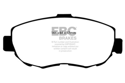 Designed for premium street driving offering better brake effect up to 600-degrees C (1100-degrees F). EBC Greenstuff has a high initial brake effect and gives drivers confidence from first application of the brake pedal. There is no such thing as a NO DUST pad. The very nature of how a brake works requires that some dust be generated to avoid rotor vibration (shimmying). The EBC pad creates less dust and dust is more easily washed off than most. All pads create more dust as they are bedding in especially if rotors are worn. Nominal friction coefficient 0.55. For heavier faster cars and vehicles above 200bhp we strongly recommend Redstuff which DOES offer much less dust.