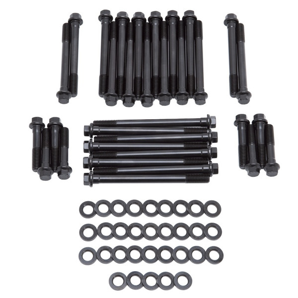 Edelbrock Head Bolt Kits contain a complete set of the highest quality head bolts and hardened washers available. Cold-formed to ensure molecular integrity and heat treated prior to thread rolling...