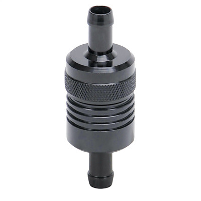 Edelbrock part #8136 Aluminum Street Fuel Filter feature a sintered-bronze 40-micron element that can be cleaned or replaced. The filter is designed for carbureted engines making less than 300 hp.