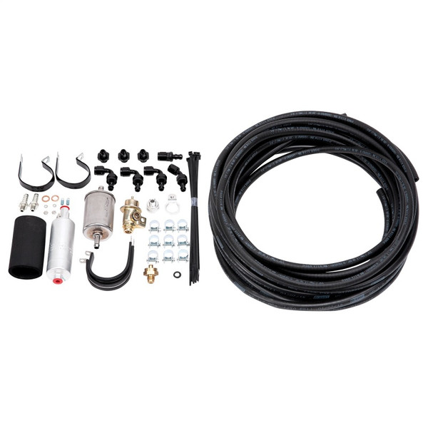 Edelbrock Preset Return-Style EFI Fuel Kit #3653 includes everything needed to upgrade a carbureted fuel system to a high pressure EFI system, excluding the fuel tank. This kit is a return-style and will complete the fuel system loop by returning unused fuel to the tank. Kit includes a 67 GPH (215 liter/hr) fuel pump, 58 PSI preset regulator, filter, Russell Twist-Lok hose, hose ends, mounting brackets and hardware. A baffled fuel tank is recommend to prevent fuel starvation. This system is rated for engines up to 600 HP, when used with an Edelbrock EFI system.
