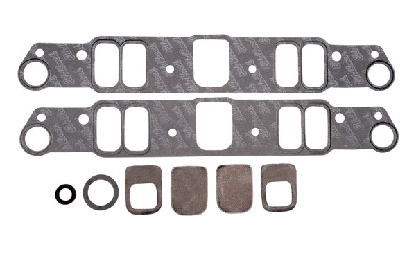 Edelbrock part #7280 Intake Gaskets for 1961-79 3626-389-400-421-428-455 Pontiac engines allow for optimum flow and performance. Any gasket can create a seal, but a good gasket can do it with less clamping force, and for a longer period of time. The new MP-2N Micropore technology does not use solvents making our gaskets environmentally friendly. Impervious to most chemicals, this synthetic fiber composite provides a high recovery under load. This means that when compressed, the gasket will conform to any imperfections on the sealing surface even using lower flange pressures. A nitrile bead around each port opening makes the seal even better.