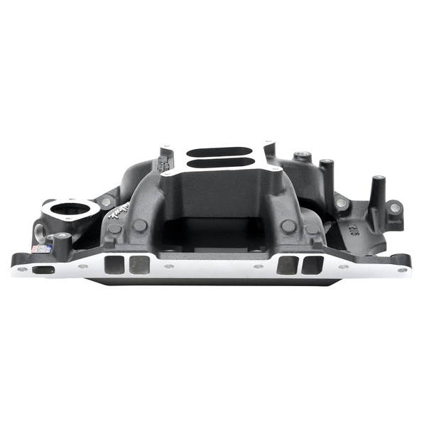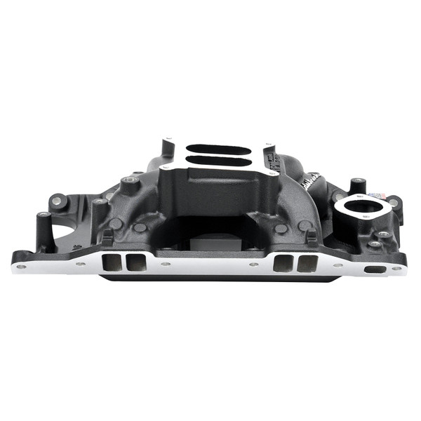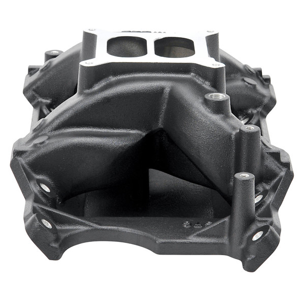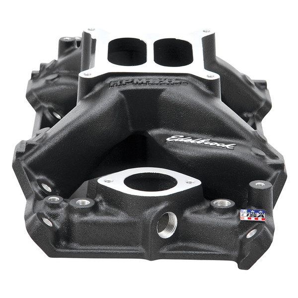 Edelbrock part #75763 RPM Air-Gap intake manifold is designed for 340-360 c.i.d. Chrysler V8's and 318 c.i.d. engines with 340-360 cylinder heads. The RPM Air-Gap incorporates the same race-winning technology that's been used on our Victor Series competition intakes for years. The Air-Gap design features an open air space that separates the runners from the hot engine oil resulting in a cooler, denser charge for more power. Accepts 1975 and earlier waterneck only. No provision for exhaust heated chokes and no exhaust crossover. Will not accept stock Thermo-Quad carburetor. Will not fit 1992 and later Magnum engines. Includes nitrous bosses. This manifold offers a durable black power coated finish for long lasting protection and a distinctive look.