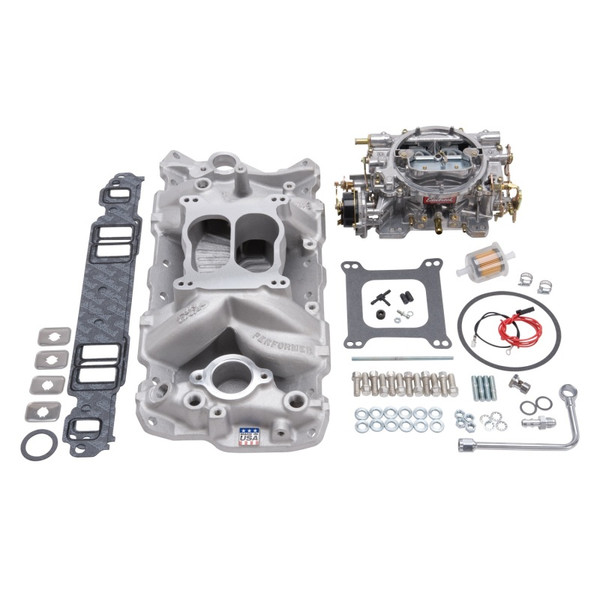Edelbrock Manifold And Carb Kit Performer RPM Small Block Chevrolet 1957-1986 Natural Finish - 2023