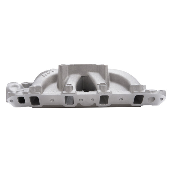 Edelbrock part #29215 Victor Jr. 302 EFI intake manifold is designed for use with Ford 289-302 competition engines using modified stock cast iron or aftermarket Windsor-style cylinder heads such as Edelbrock #60259 and #77169 or equivalent. Victor Jr. EFI also features bosses for rear water crossover. Port exit size at cylinder head is 1.08" x 1.90" with extra material to accommodate a 1.18" x 2.10" opening. The Edelbrock Victor Jr. #29215 EFI is a single-plane, high-rise intake designed for maximum race-winning power at higher engine speeds.