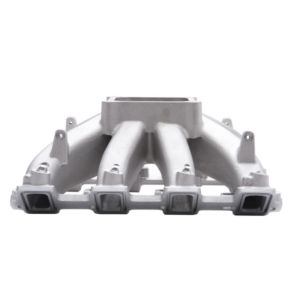 Edelbrock part #28215 Super Victor LS3 EFI intake manifold is designed for Gen IV LS engines equipped with LS3 cylinder heads. This new Super Victor intake manifold is ideal for anyone building a 700+ hp 4500 style EFI large displacement racing engine operating between 3,500 - 7,500 rpm. This Super Victor intake manifold is designed with 24% larger runners than our Victor Jr. #28455 along with a larger 4500 style plenum. The large plenum makes this intake manifold ideal for nitrous and forced induction applications. The manifold also features tapered runners for increased flow at high rpm. The Super Victor 4500 series manifolds can accommodate bores up 2.25". This Super Victor LS3 EFI intake manifold includes machined fuel injector bosses. A carburetor mounted style throttle bracket is recommended.