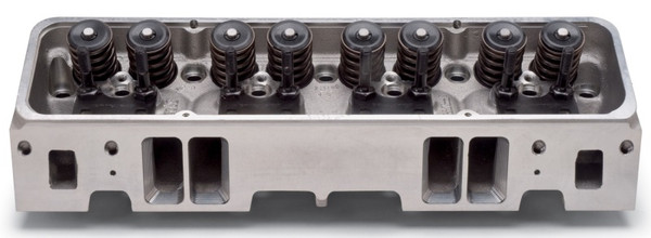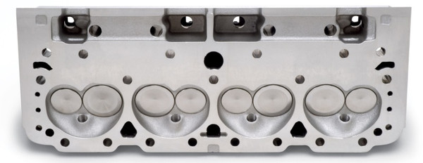 The Edelbrock #60989 E-Tec cylinder head is replacements for 302, 327, 350 & 400 c.i.d. S/B Chevy engines with "Vortec-style" manifolds. They feature an LT1-style raised runner intake port design for increased air-flow and ultimate performance. A unique combustion chamber design positions the spark plug closer to the center of the cylinder, promoting a more efficient combustion resulting in more power. This head includes an adjustable rocker stud and guide plate set-up for use with adjustable rockers or washers to properly position the stud height to accommodate factory style self-aligning rocker arms. They have 20% more exhaust flow than a cast iron Vortec head, great performance up to 6000 rpm and can produce 9.5:1 compression with stock pistons in 350 cubic-inch engines. RPM E-Tec cylinder head is dual-drilled and will accept 1987-95 center bolt and/or 1986 & prior perimeter flange mount valve covers and most stock exhaust manifolds.