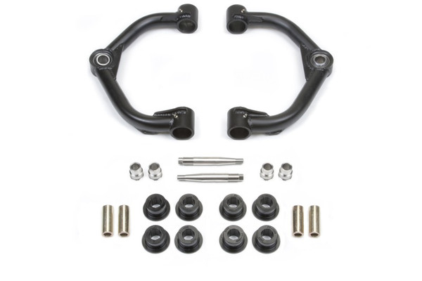 Arms eliminate upper ball joint w/ super strong 1in ID Stainless American Uniball. Additional caster is built into Arms for greater align ability to help with problematic leveling kit alignments. Allows for increased wheel travel when used with Dirt Logic 2.5 Coilover shocks. Chromoly tubing reduces flex found in stock arms for more positive road feel. 4340 Heat treated Uniball pin fits into factory ball joint taper without modification to the spindle for easy return to stock feature. Arms are direct replacements for factory arms on suspensions that require additional strength and align ability. Built with same materials as found on Trophy Trucks. .120in Wall 4130 Chromoly Tubing. 1.50in OD. .250in wall DOM Bushing Barrels. 1in ID Stainless Steel American Uniball. 17-4 Stainless Misalignments