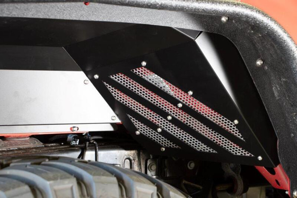 Fits 2020 to Current JT Gladiator Made from Black Powder Coated Aluminum Fishbone logo laser cut into inner fender REAR SET ONLY Set of 2 These are only the inner panels.