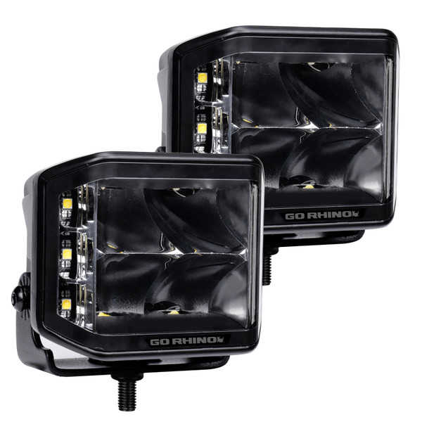 Go Rhino Xplor Blackout Series Cube LED Sideline Flood Light Kit (Surface Mount) 4x3 - Blk (Pair) - 750700321FCS