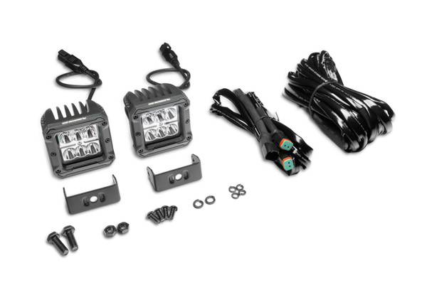 Go Rhino Xplor Bright Series Cube LED Flood Light Kit (Surface/Threaded Stud Mount) 3x3 - Blk (Pair) - 751803023FCS