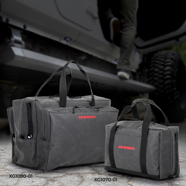 Go Rhino’s Xventure line of soft-shell bags combines new age materials with artisan craftsmanship to provide a stylish solution for your storage needs. The handcrafted, heirloom quality bags are lightweight, yet tough enough to protect your gear and tools for a lifetime. The water-resistant waxed canvas bags feature double wall construction with a poly liner, a double-thick reinforced base, industrial strength 1-1/2†webbing and heavy duty YKK zippers. The black, custom dyed surface is easy to clean and ages with a unique, attractive patina. The interior is a heavy-duty poly material that is bright red, which makes it easy to locate your items, and has integrated nylon webbing for pockets. Xventure Gear Bags come in a variety of sizes with a limited lifetime warranty.