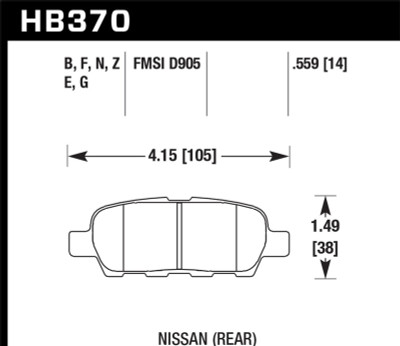 Hawk 03-07 350z / G35 / G35X w/o Brembo HP+ Street Rear Brake Pads - HB370N.559