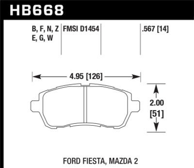 quick view Add to Cart Hawk Performance Hawk 11-12 Ford Fiesta S/SE/SEL / 11-12 Mazda 2 Sport/Touring DTC-60 Front Race Brake Pads - HB668G.567 MSRP: $233.99 $189.53 High Performance Street disc brake pads are legendary for increasing stopping power on street-legal vehicles. Increasing the performance of your vehicles braking system is easy when you choose Hawk... Add to Cart Add to Wish List Add to My Wish List Create New Wish List Compare