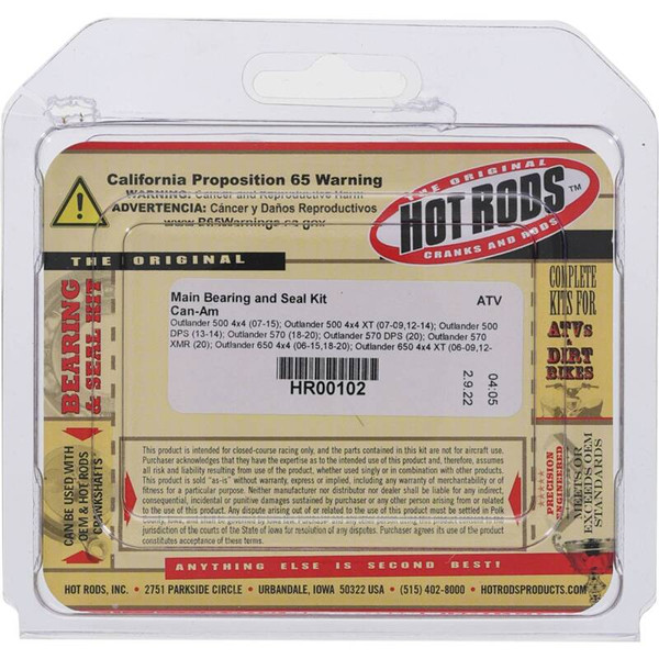 quick view Add to Cart Hot Rods Hot Rods 04-05 Outlander 300 2x4/04-05 Outlander 4x4 Main Bearing & Seal Kit - HR00101 MSRP: $133.90 Hot Rods Hr Main Bearing And Seal Kit