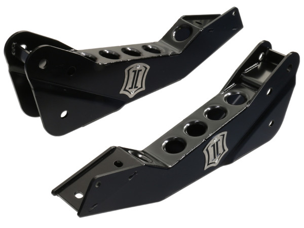 The ICON Radius Arm Drop Kit for the 2011-2016 Ford F-250/F-350 Super Duty 4WD allows the use of the stock or aftermarket radius arms with ICON 4.5â€-7†lift suspension systems. This kit consists of fabricated radius arm drop brackets, CNC laser cut and brake-formed from steel plate and engineered to withstand the stresses of aggressive off-road driving. The drop brackets look as great as they perform with a durable semi-gloss black powder coat finish. Wheel with confidence knowing that the brackets are covered by ICON's Limited Lifetime Warranty.