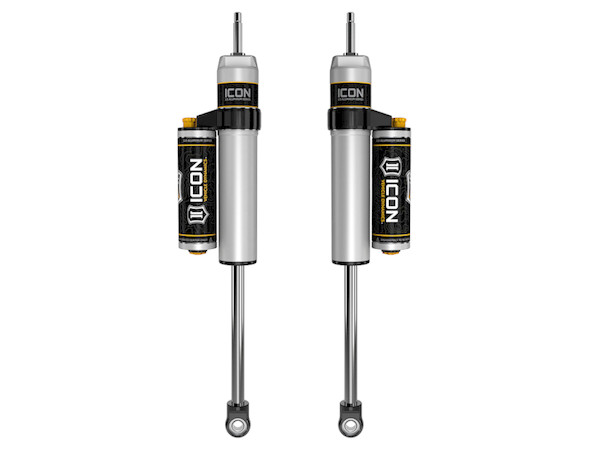 ICON Vehicle Specific (V.S.) 2.5 Aluminum Series shocks are designed and built to give your vehicle outstanding performance off-road and a smooth ride on the street. These shocks are configured specifically for each application in both length and damping tune. Like all ICON'S Shock Absorbers, V.S. 2.5 Aluminum Series shocks are 100% rebuildable and 100% revalveable. For piggyback and specific remote reservoir applications ICON'S unique use of a 6061 billet aluminum manifold a few inches below the top cap of the shock creates an internal Bump Zone that when used creates an additional 20% of damping force. This additional force helps prevent harsh bottom outs and controls the suspension when compressing at high velocity. The ICON CDC Valve is an externally adjustable valve that restricts oil flow into the reservoir which creates 10 levels of compression damping force ranges. If you are looking for a more user defined tune, consider looking into the Omega Series bypass shocks.