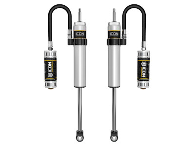 ICON Vehicle Specific (V.S.) 2.5 Aluminum Series shocks are designed and built to give your vehicle outstanding performance off-road and a smooth ride on the street. These shocks are configured specifically for each application in both length and damping tune. Like all ICON'S Shock Absorbers, V.S. 2.5 Aluminum Series shocks are 100% rebuildable and 100% revalveable. For piggyback and specific remote reservoir applications, ICON'S unique use of a 6061 billet aluminum manifold a few inches below the top cap of the shock creates an internal Bump Zone that when used creates an additional 20% of damping force. This additional force helps prevent harsh bottom outs and controls the suspension when compressing at high velocity. If you are looking for a more user defined tune, consider looking into the Compression Damping Control Valve (CDCV) shocks.