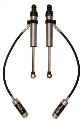 ICON Vehicle Specific (V.S.) 2.5 Aluminum Series CDCV shocks are designed and built to give your vehicle outstanding performance off-road and a smooth ride on the street. These shocks are configured specifically for each application in both length and damping tune. Like all ICON'S Shock Absorbers, V.S. 2.5 Aluminum Series shocks are 100% rebuildable and 100% revalveable. For piggyback and specific remote reservoir applications, ICON'S unique use of a 6061 billet aluminum manifold a few inches below the top cap of the shock creates an internal Bump Zone that when used creates an additional 20% of damping force. This additional force helps prevent harsh bottom outs and controls the suspension when compressing at high velocity. The ICON CDC Valve is an externally adjustable valve that restricts oil flow into the reservoir which creates 10 levels of compression damping force ranges.