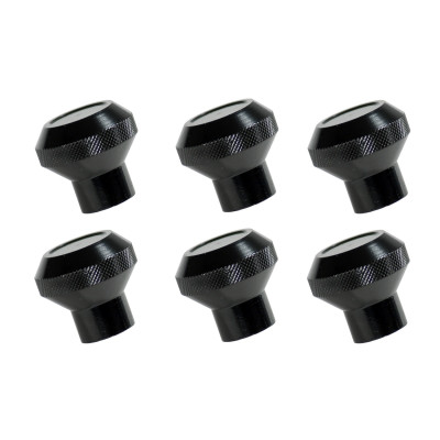 Give your dash controls a step up in style with this black billet aluminum dash knob set. Sold as a six piece set and upgrades the look of your Jeep. These highly polished shift knobs attach directly to your original equipment shifter with no drilling...