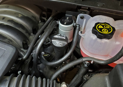 During the process of venting crankcase pressure back through your intake track, large amounts of oil, in the form of vapors can gather/accumulate in your intake tube, intake manifold runners and even dilute your gas, lowering its octane level. This happens on all engines and is even worse with forced inducted vehicles (supercharged and turbocharged) as crankcase pressures are increased. To combat this, we have developed an oil separator of our own design. Milled from solid billet aluminum this is a rock-solid piece. It has a knurled tank base for easy removal to drain the spent oil and an O-ring seal to prevent any leaks. Filtering consists of a fine mesh stainless steel screen that traps fine oil vapors and releases them once heavy enough to fall. They then pass through a 1/2" thick 1/16th" aluminum honeycomb filter where they grow every larger and then fall into the bottom. By the time the oil gets through the filter it's too heavy to be passed on into the intake. The tank holds 3 oz of fluid, while that may not sound like a lot, you shouldn’t see that much oil in your PCV system. Drain it every 2000-3000 miles and you will never come close to filling it.