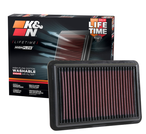 K&N washable, reusable High-Flow Air Filters feature a state-of-the-art design of layered, oiled cotton media engineered to improve airflow and capture contaminants, and are designed to provide an increase in horsepower. Each performance air filter is reusable, engineered to last for the entire lifespan of your vehicle, and backed by K&N's 10-Year/Million Mile Limited Warranty. K&N drop-in replacement filters are designed to install easily into your factory air box. Upgrade today and start enjoying superior airflow and superior performance from K&N's most popular product!
