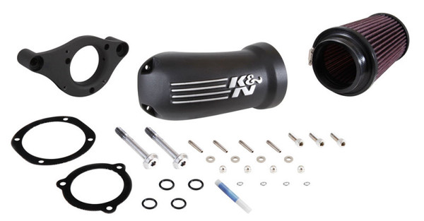 K&N AirCharger air intakes for select Harley-Davidson Touring, Softail, Twin-Cam and Sportster motorcycle models increase power by eliminating the restrictive stock OE air cleaner and replacing it with a K&N high-flow air filter and cast aluminum intake tube. These intakes come with an die-cast aluminum throttle-body mounting plate and mounting hardware. K&N high-flow intake systems give your Harley an aggressive appearance while providing a significant increase in airflow resulting in more power. These K&N air intakes are street legal in most states. They are not legal for use in California and other states adopting California emission standards.